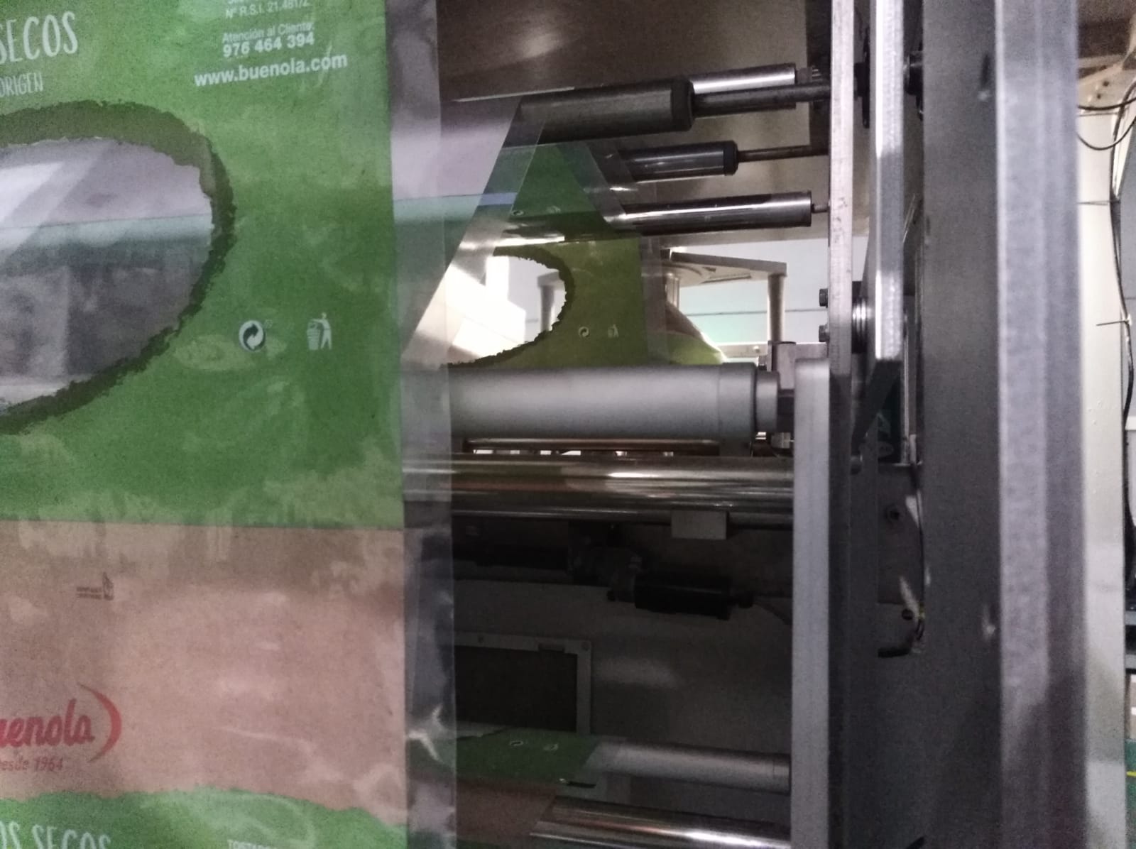 Labeling on film reel before product filling, with a clamping and protection box for the labeling head and film reel.